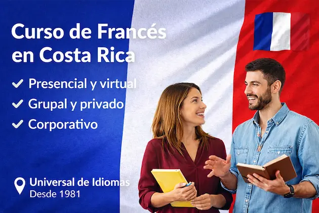 En Universal de Idiomas ofrecemos cursos de francés en Costa Rica orientado a resultados: comunicación real, pronunciación clara y progreso por niveles. Somos una institución fundada en 1981, con más de 45 años de trayectoria, y una metodología práctica para que el estudiante avance con seguridad desde las primeras clases.